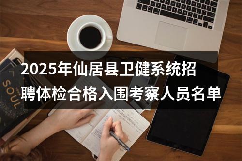 声明:专注 2025年仙居县卫健系统招聘体检合格入围考察人员名单 相关岗位分析;专业指导面试技巧;保障就业成功概率。