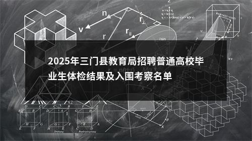 2025年三门县教育局赴浙江师范大学校园招聘2025届普通高校毕业生的工作已于2025年7月15日进行了体检,现将体检结果予以公布(见附件)。